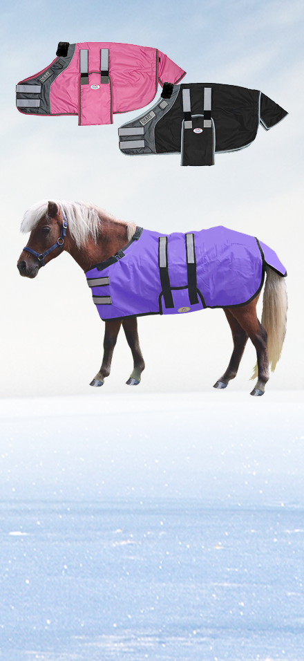 Derby Originals Mini Horse & Foal Winter Turnout Blanket – Reflective, No-Hardware Design, 600D Waterproof Outer, 150g Insulation, 170T Lining, Adjustable Fit, 1-Year Warranty