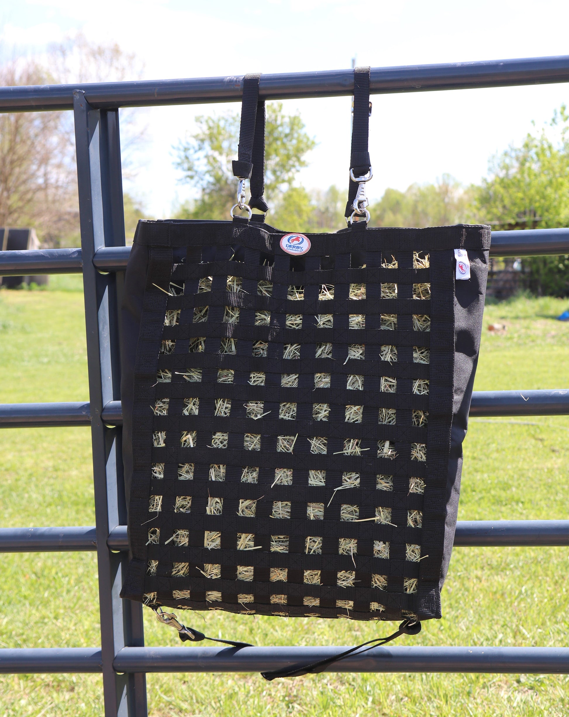 - SUPER TOUGH BOTTOM® DESIGN - our exclusive Super Tough Bottom® is made of reinforced overlapping nylon webbing. This design allows for superior strength and durability while keeping your hay fresh and allowing dust and debris to exit the bag.