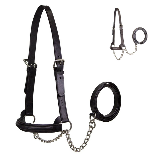 Regular price $42.95Regular priceUnit price per$79.90Sale price $42.95Derby Originals Premium Raised Padded Leather Cattle Show Halter, Small/Medium/Large, Adjustable Fit with 48" Lead and 14" Chain, Durable Hardware, 1-Year Warranty