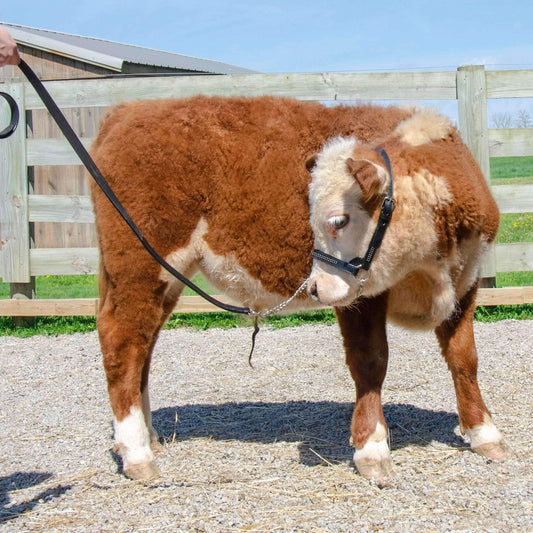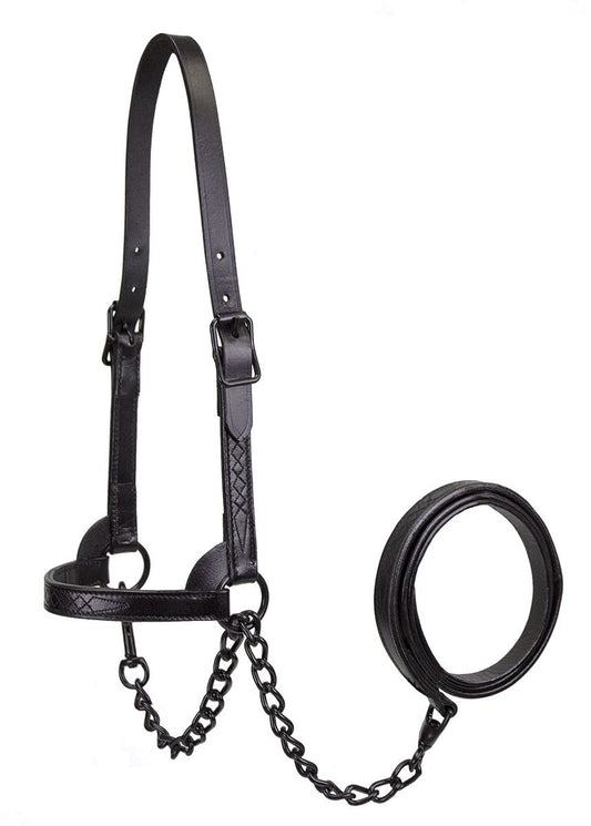 Regular price $39.95Regular priceUnit price per$69.90Sale price $39.95Derby Originals Midnight All Black Premium Round Rolled Leather Cattle Show Halter, Small/Medium/Large, Adjustable Fit with 48" Lead and 14" Chain, Durable Hardware, 1-Year Warranty