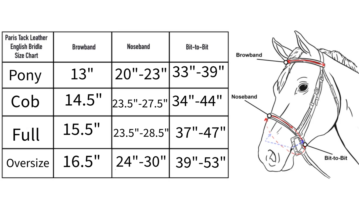 - AVAILABLE IN FIVE SIZES - this bridle is available in the colors Havana, Chestnut, and London Tan and in sizes Pony, Cob/Arab, Full Horse, Oversize/Warmblood, and Draft to fit almost any equine.