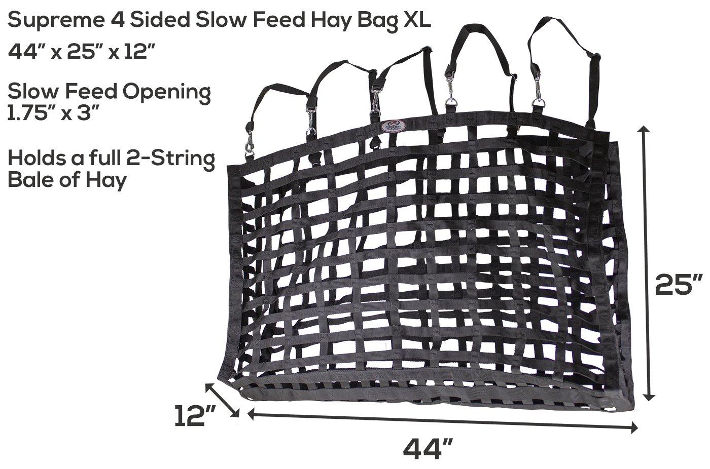 THE IDEAL SLOW FEEDER - this 44"x25"x12” hay bag features 1.75” x 3.5” rectangular openings which allow your horse to eat comfortably at a more natural pace that mimics grazing. Our hay bags are ideal for helping to prevent colic or digestive upset.