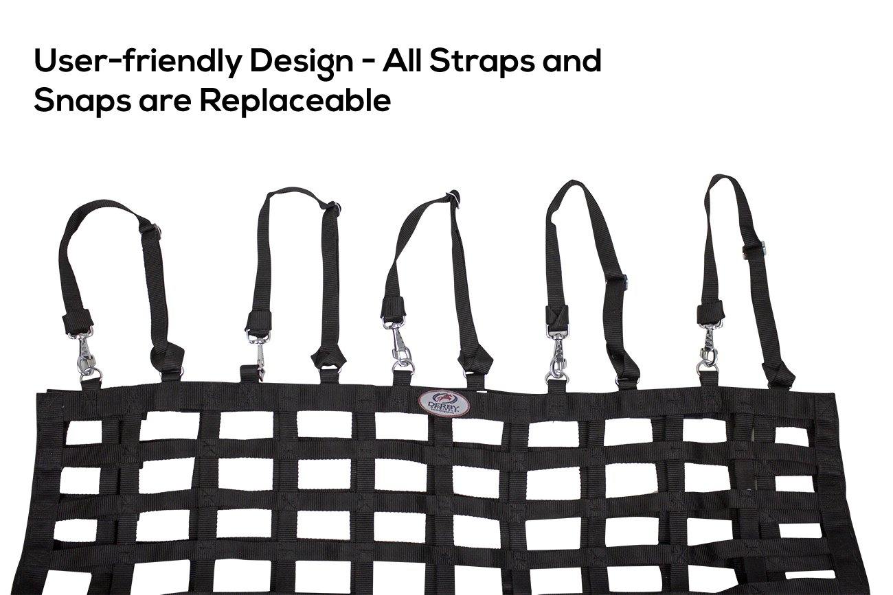 HEAVY-DUTY CONSTRUCTION - our hay bag is made of super tough double-layered 1200D nylon and features premium hardware and straps and reinforced stitching that allows it to withstand whatever forces your horse exerts on it.