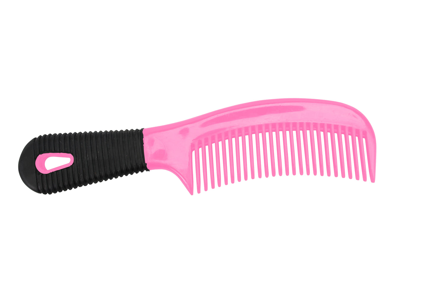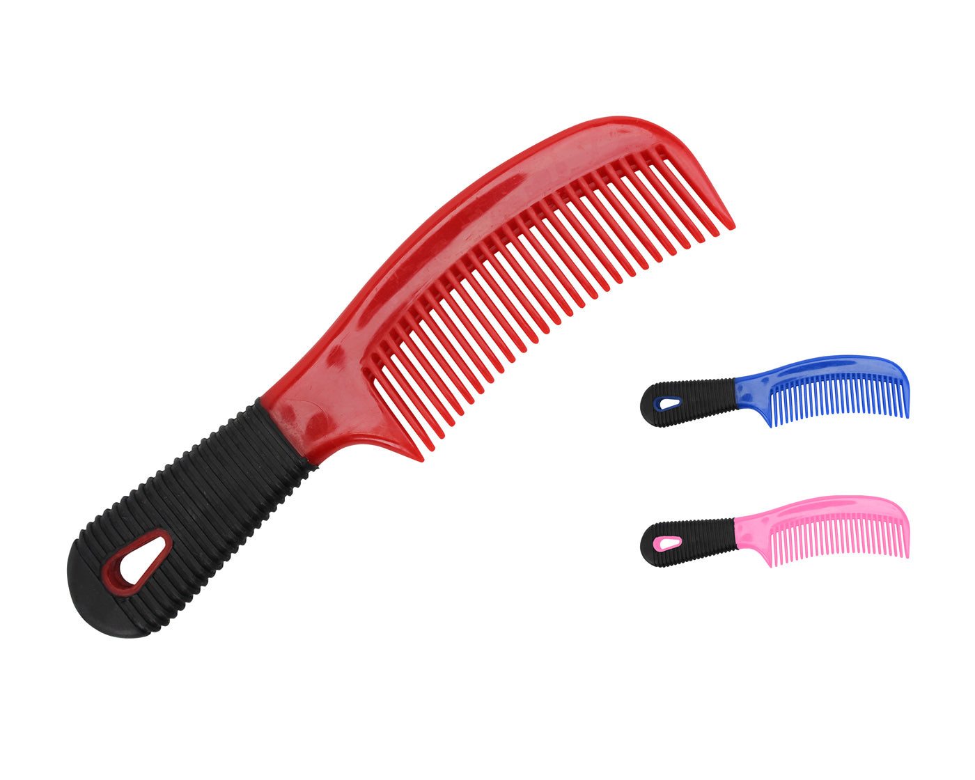 Tahoe Tack’s plastic soft-grip mane and tail combs are specially designed to work for horse's manes and tails, but are also excellent for other livestock animals and for grooming long-coated dogs. these grooming combs have sturdy, flexible 1" teeth that are designed to easily detangle and minimize hair breakage, making these excellent for taming unruly manes and tails. These grooming combs are made of plastic with a rubber soft-grip handle that is designed to be to be comfortable to hold and ergonomic. These combs are flexible, durable, and usable indoors or out.