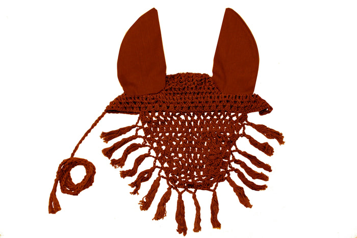 Derby Originals Crochet Horse Fly Veil Ear Bonnet with Fringe has been designed to not only help your horse look great, but to keep them more comfortable and focused when under saddle. Our ear nets provide a barrier between your horse’s ears and the outside world, which helps to muffle loud sounds to keep your horse calm and focused during competitions and events. Our bonnets  also help protect against insect bites, sunburn, frostbite, dirt, debris, and more. This ear bonnet is made of soft woven cotton to promote optimum comfort. Cotton is breathable and gentle against your horse’s delicate skin, making it comfortable to wear any time of year.
