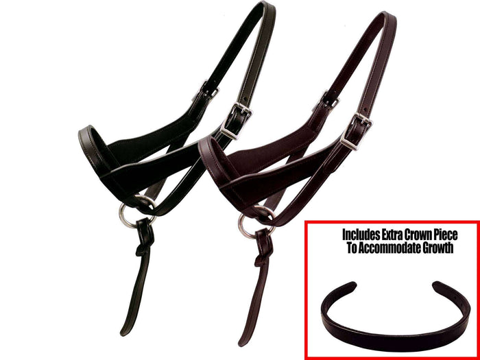 - DESIGNED TO FIT GROWING FOALS - these halters have an adjustable figure-8 design that allows you to adjust the fit of this halter. This halter includes two crownpieces that can be changed out as your foal grows for a long-lasting fit.