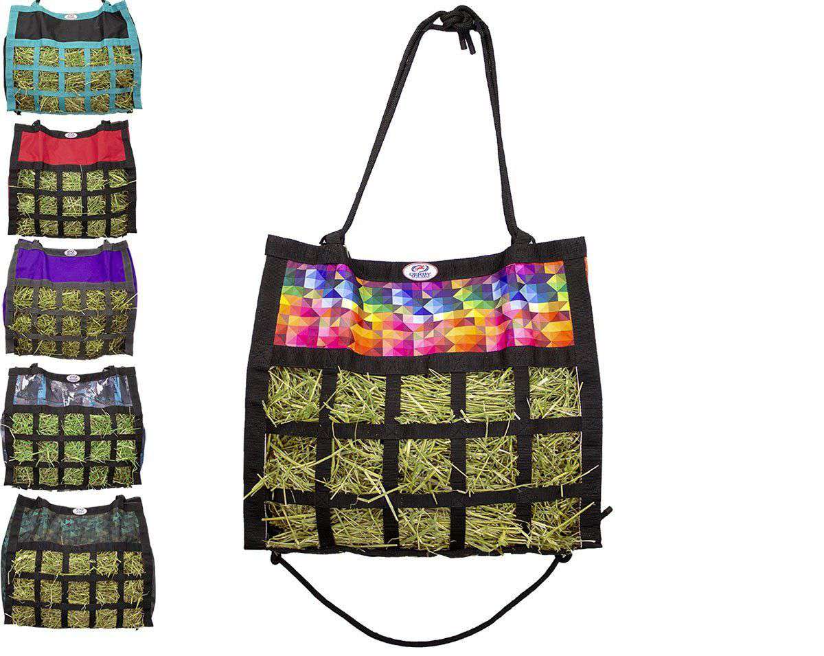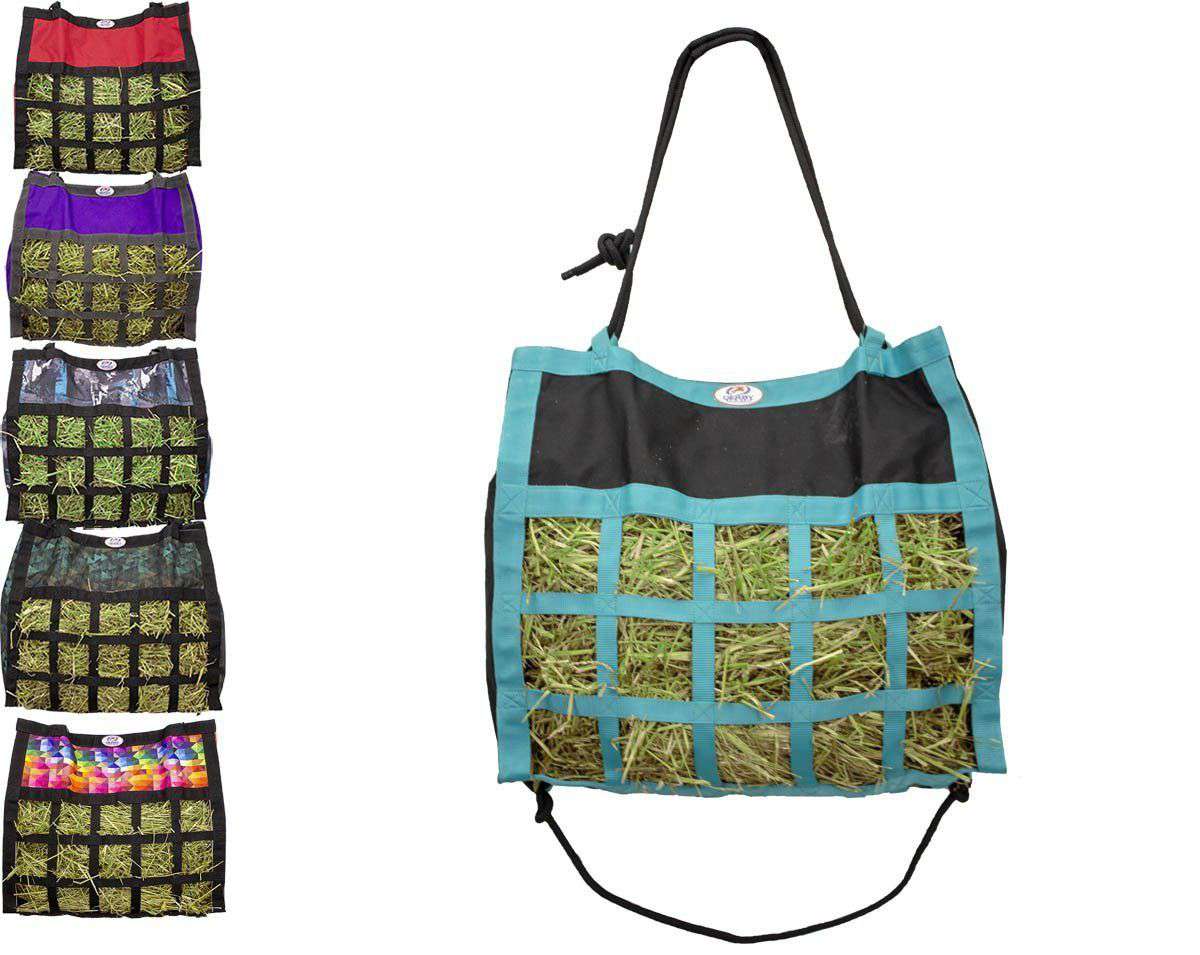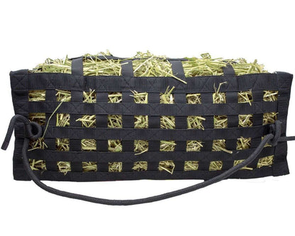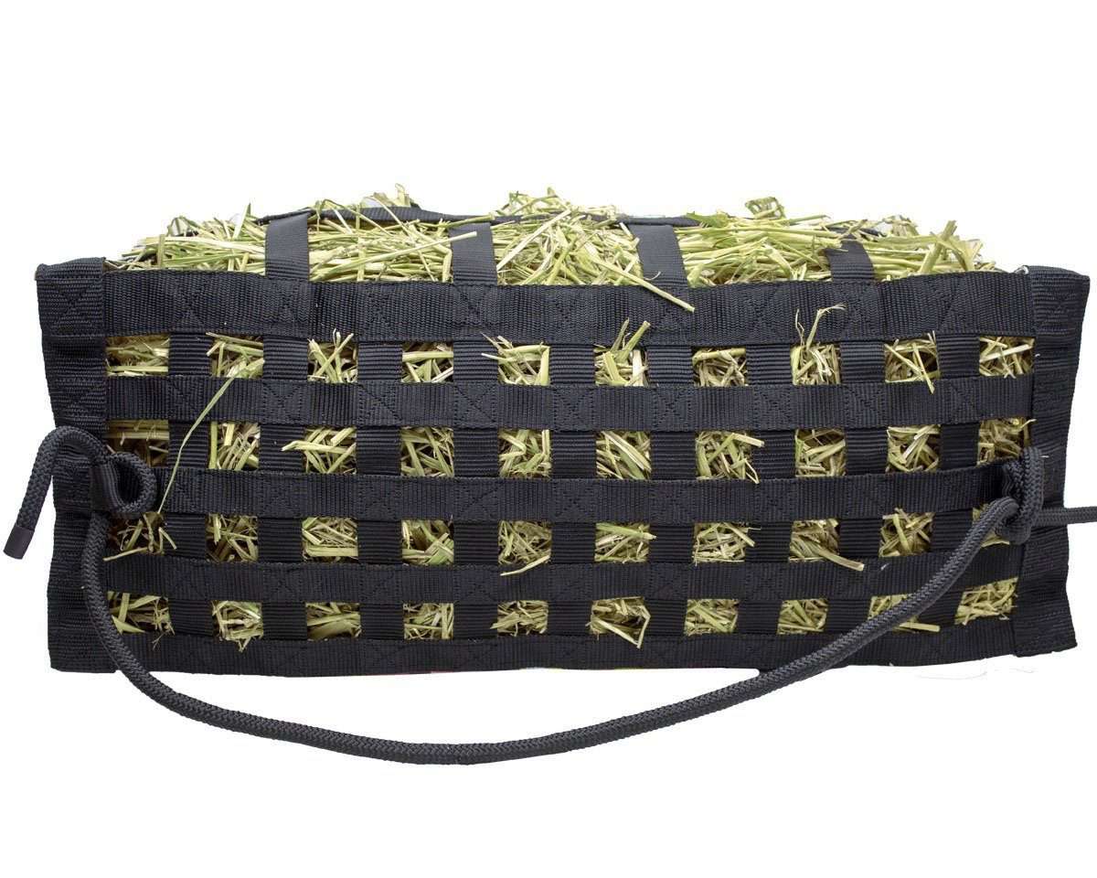 - HOLDS 2-3 FLAKES OF HAY - this 24.5"x9.5"x21.5” hay bag with 3.5" square openings holds approx. 2-3 flakes of Timothy, Orchard, Alfalfa, or any other type of hay. Our hay bags were designed to minimize frustration and can be stuffed in seconds.