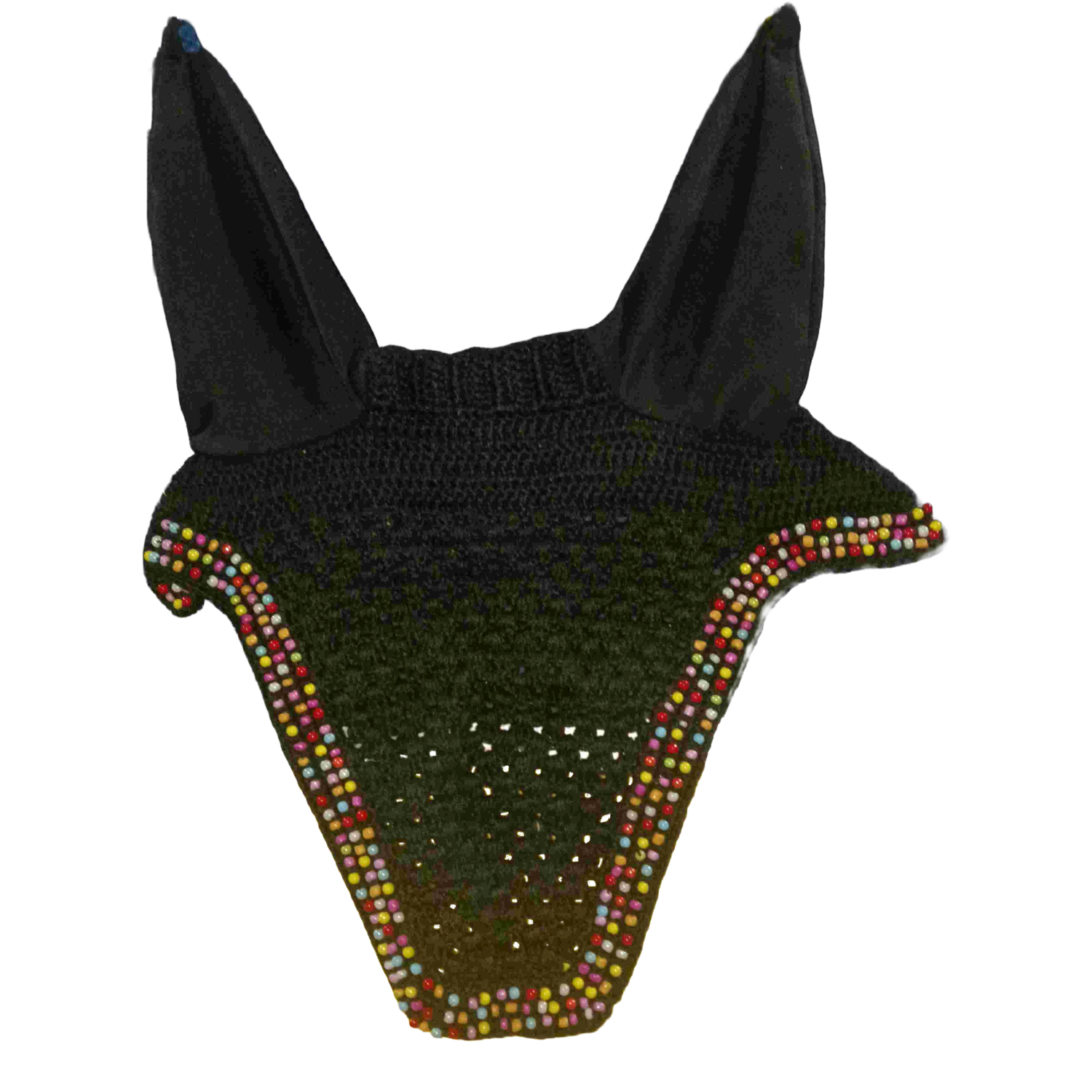Paris Tack Crochet Beaded Horse Fly Veil Ear Bonnet has been designed to not only help your horse look great but to keep them more comfortable and focused when under saddle. Our ear nets provide a barrier between your horse’s ears and the outside world, which helps to muffle loud sounds to keep your horse calm and focused during competitions and events. Our bonnets also help protect against insect bites, sunburn, frostbite, dirt, debris, and more.