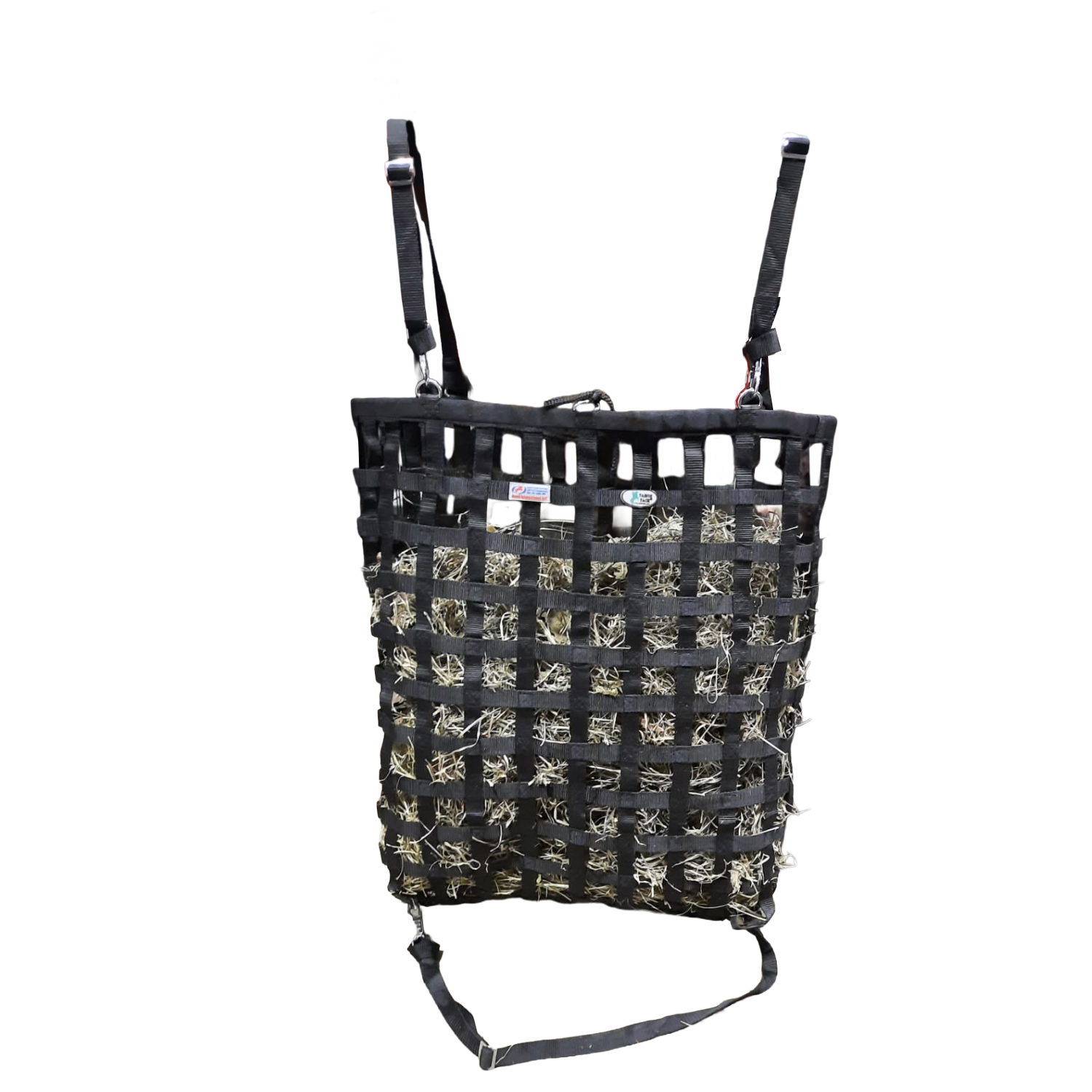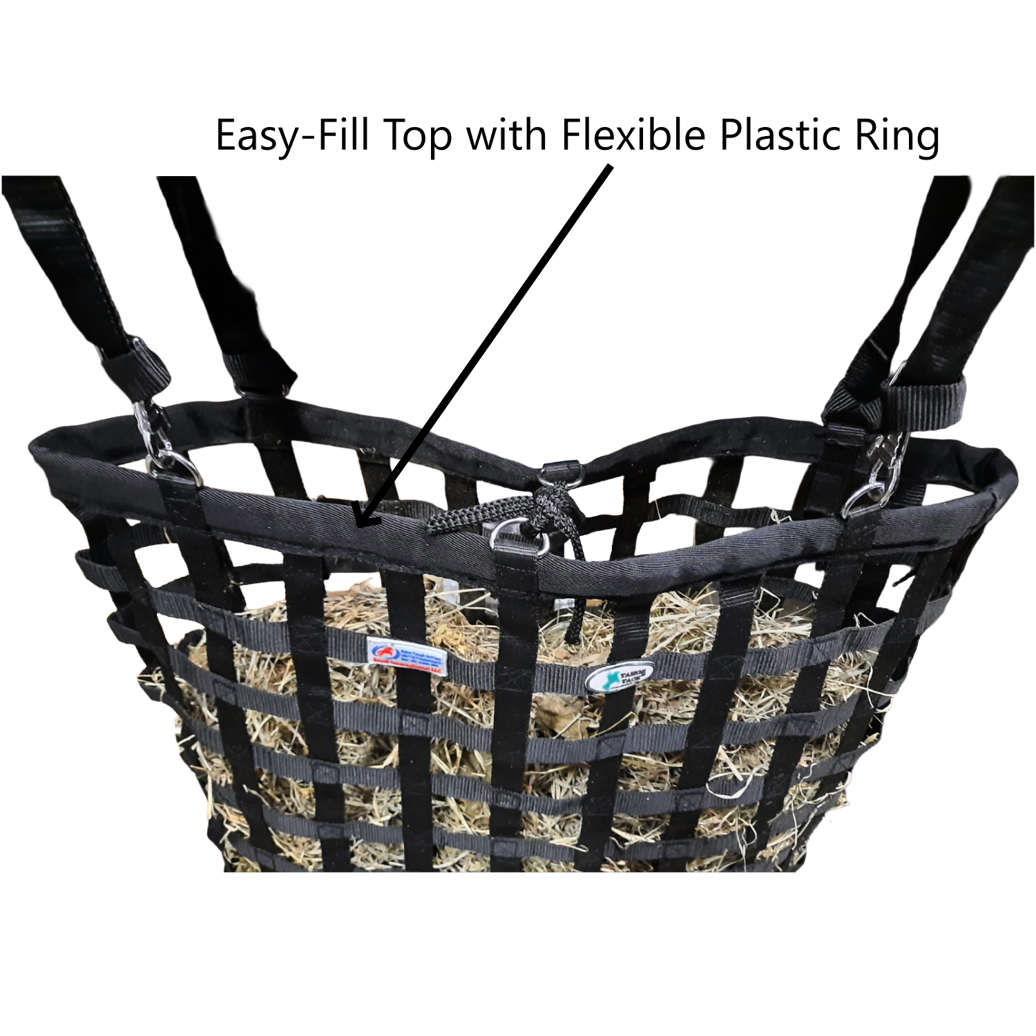 - Easy-Fill Top with Plastic Ring – Built-in flexible plastic ring holds the top open while you load, making it easier and faster to fill without spilling hay.