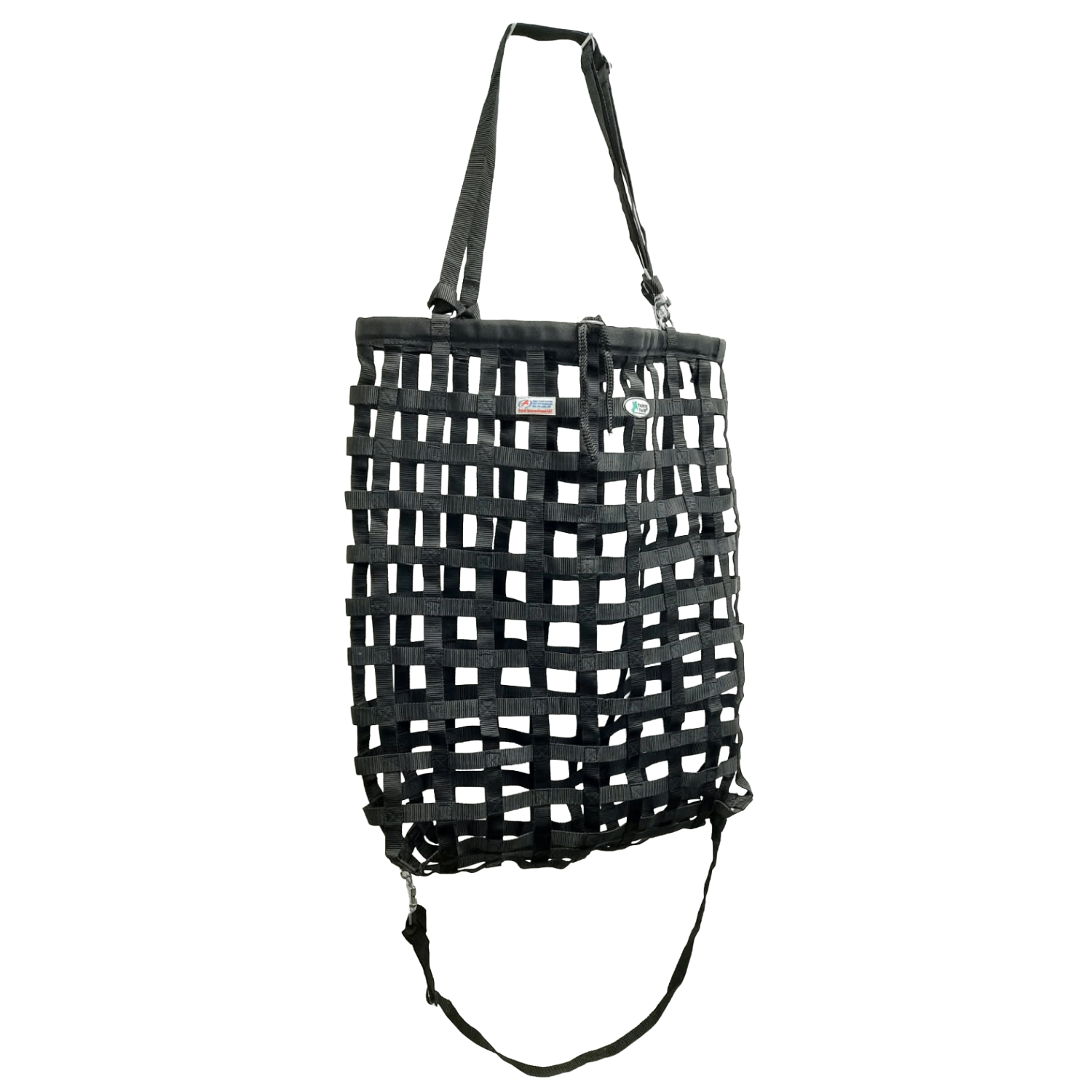 The Tahoe Patented Slow Feed Hay Bag is specially designed to help horses eat at a healthier pace while minimizing hay loss. This bag features durable 2"x2" square mesh openings on all four sides, giving your horse easy access to hay while slowing down consumption to improve digestion and reduce boredom. The easy-fill top ring saves time during feeding, and the super tough reinforced bottom withstands constant pulling and aggressive eaters. Ideal for use at home, in the trailer, or while traveling, this slow feeder encourages natural grazing behavior and helps keep stalls cleaner and more organized. A must-have for horse owners looking for convenience, durability, and improved feeding efficiency.