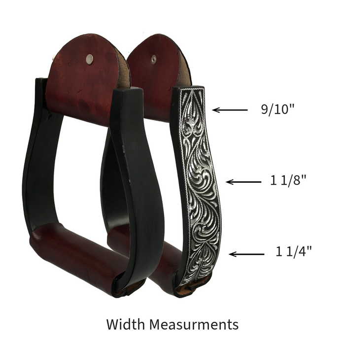 - HAND ENGRAVED DESIGN - these stirrups feature beautiful hand engraving that give the extra detail needed to set you apart in the show arena. Due to the fact that each stirrup is individually hand engraved, the engravings may vary slightly between each stirrup, but overall have the same engraving pattern.