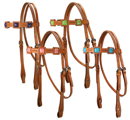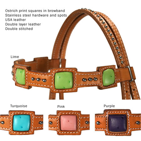 - MULTIPLE COLORS AVAILABLE - this headstall is available in four leather accent colors: Pink, Lime Green, Turquoise, and Purple.